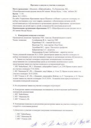 Әлеуетті өнім берушіні таңдау конкурсы » Молда Мұса атындағы N5 жалпы орта мектеп» КММ